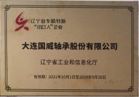 2021年10月1日,大連國威軸承股份有限公司獲得省級‘’專精特新小巨人‘’榮譽稱號。